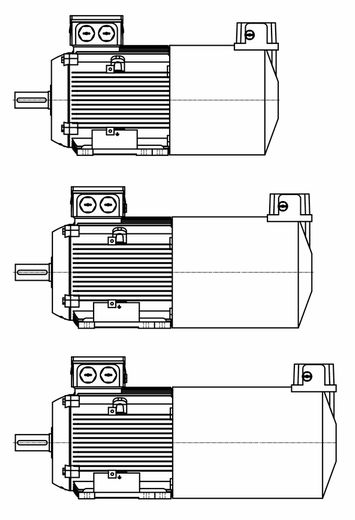 Er zijn ventilatorkappen in verschillende lengtes verkrijgbaar, afhankelijk van het aantal accessoires dat op de motor is gemonteerd (rem, encoder, rem & encoder):